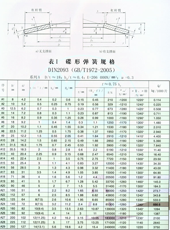 • 碟簧參數(shù)表